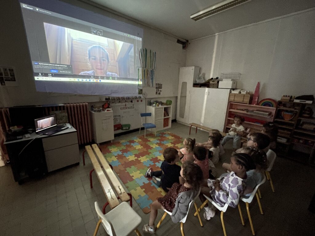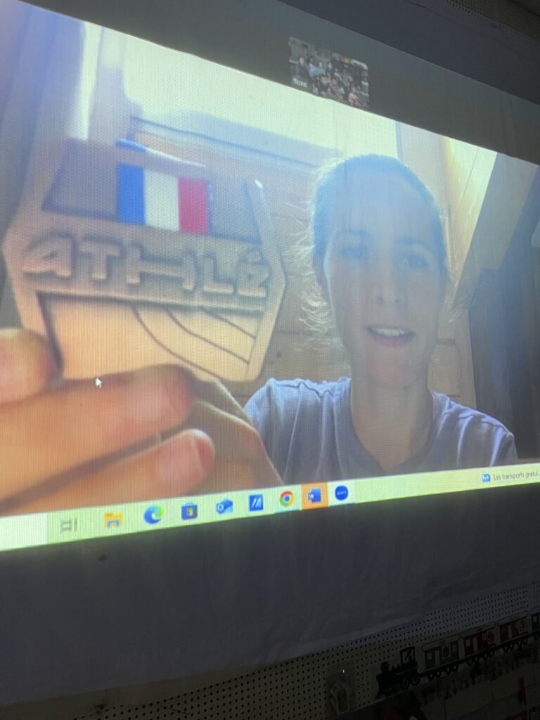 Cette année est particulière pour les élèves de PS/MS. En effet, leur maîtresse laissera la classe à une enseignante stagiaire qui consacre le premier semestre à sa carrière sportive, Mélody Julien. Afin de maintenir un lien et de préparer au mieux à ce changement, des visios sont programmées, à raison d’une par mois. Cette technique permet une interaction avec les élèves et leur future maîtresse, qui est à chaque fois accompagnée par sa mascotte : Maria.
