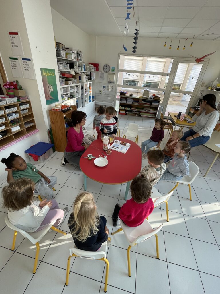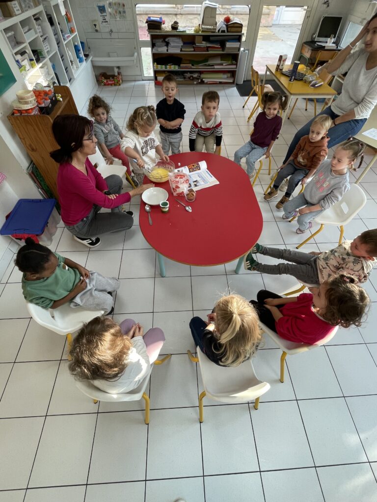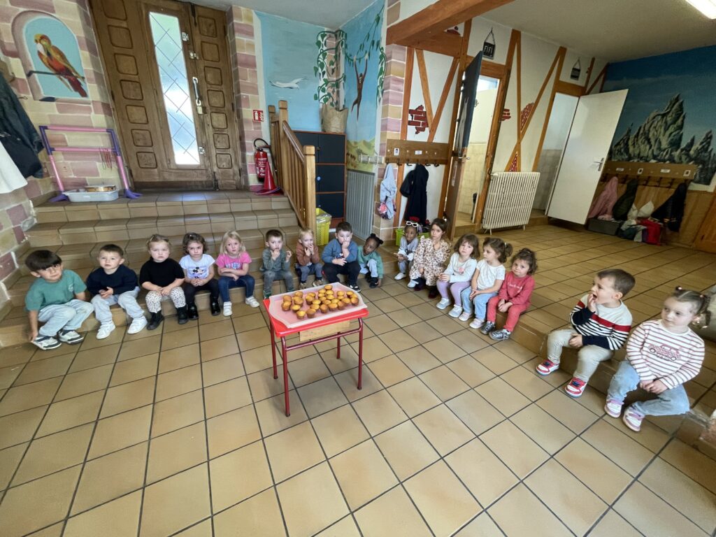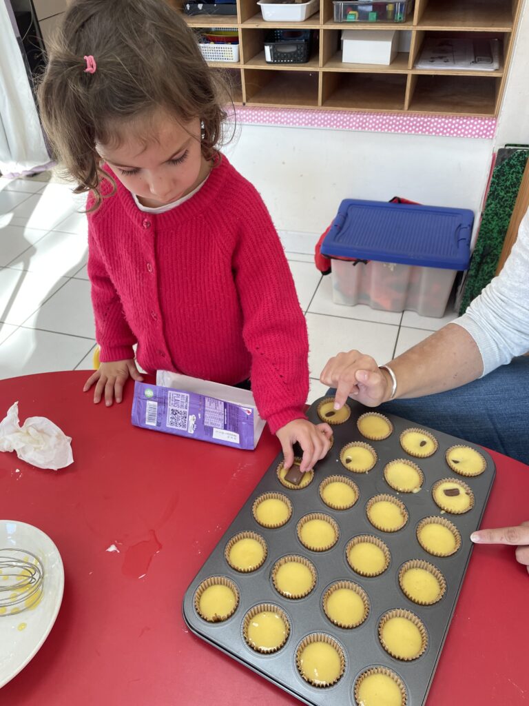 Cette année, la semaine du goût a été l’occasion tout d’abord de réaliser une recette de la méthode de mathématiques des Petites Sections. Celle-ci permet de travailler l’énumération. Les enfants ont donc préparé des muffins dans lesquels ils ont glissé un carré de chocolat dans chaque alvéole.