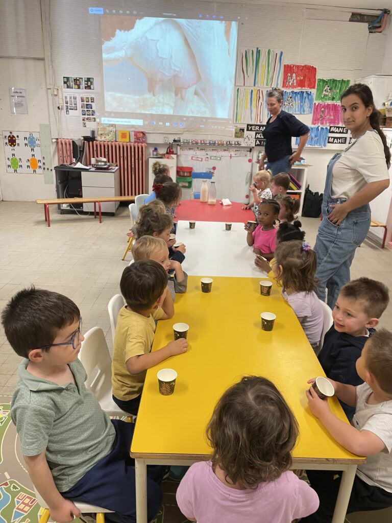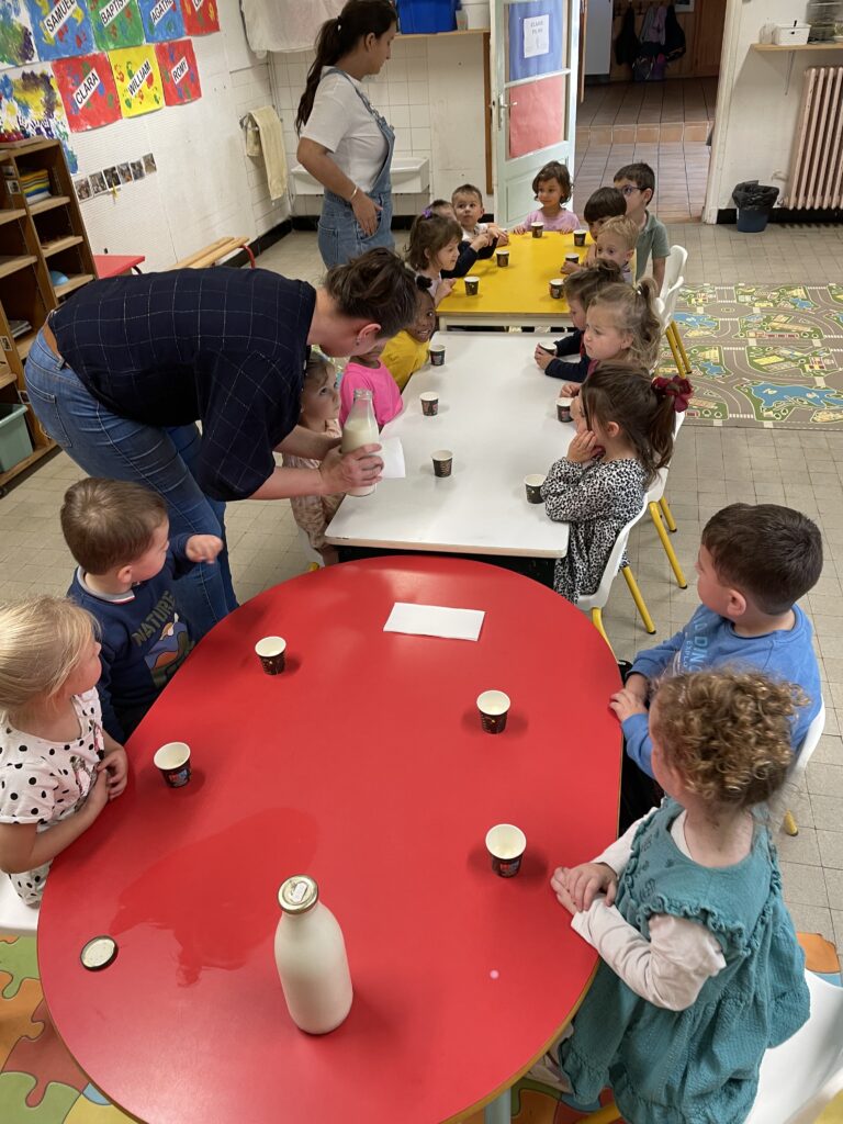 Le lendemain, nous avons accueilli dans notre classe Mme Cancé, maman de Lisa, éleveuse de chèvres. Elle nous avait apporté du lait de chèvre frais que les enfants ont dégusté avec beaucoup de plaisir.