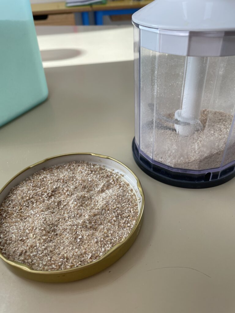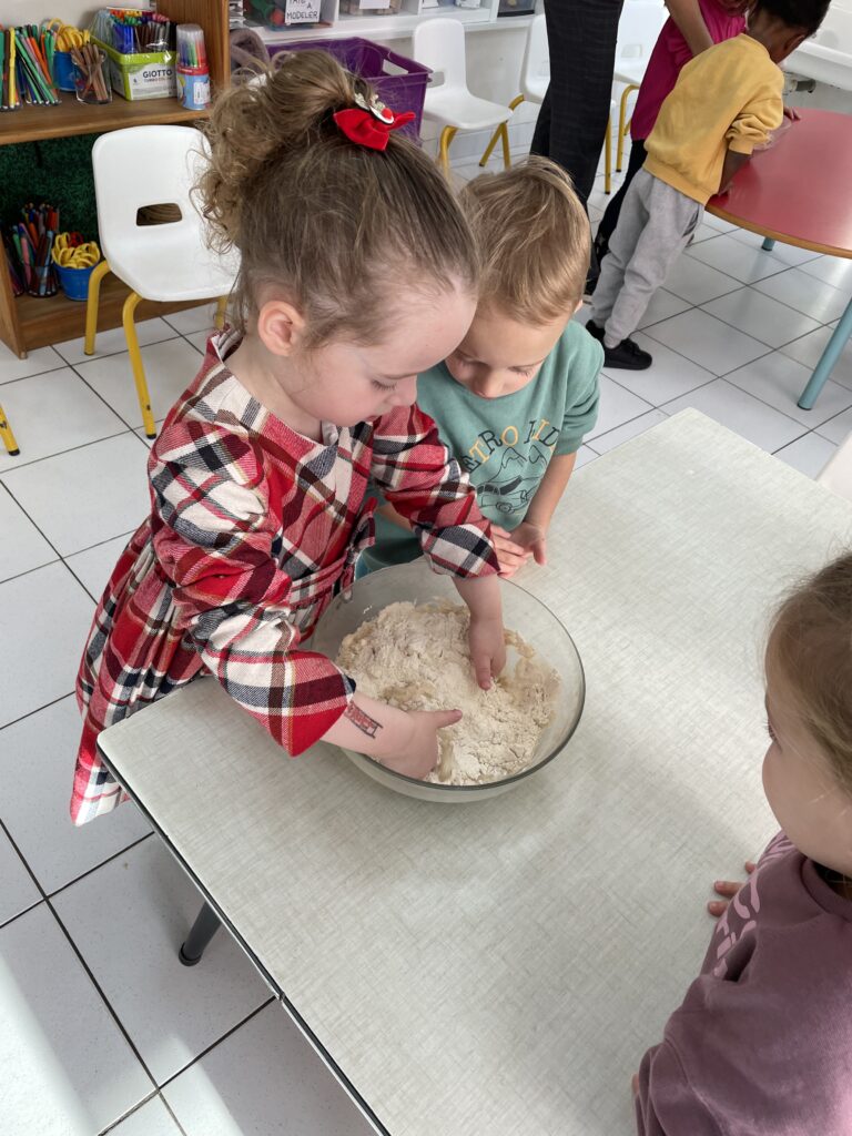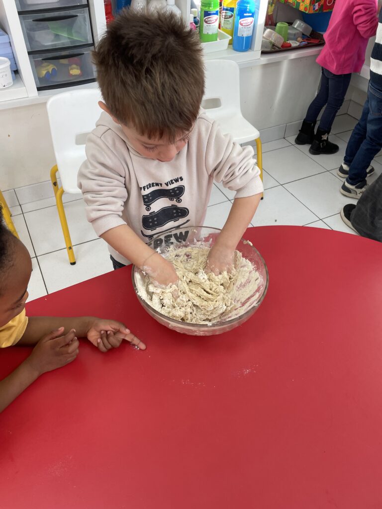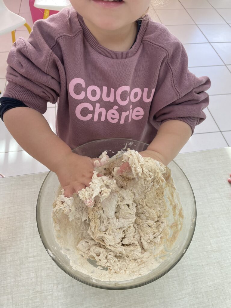 Quant à l’utilisation de la farine, les gâteaux, les crêpes et autres desserts ont fait l’unanimité ! Seulement l’objectif de cette visite était la fabrication de pain. Les enfants ont donc appris qu’en ajoutant de l’eau, du sel et du levain à la farine, on obtient de la pâte à pain.