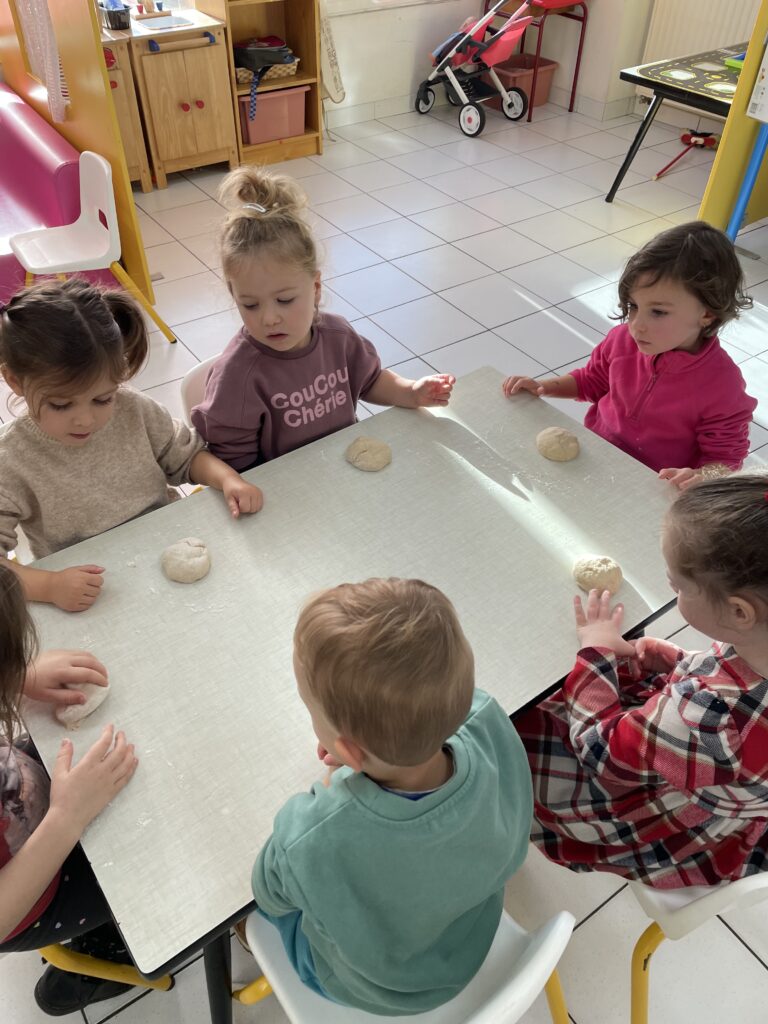 Lorsque les pâtes ont été bien pétries, il a fallu les laisser lever. Afin de gagner du temps, Mme Ginestet avait apporté de la pâte déjà levée.