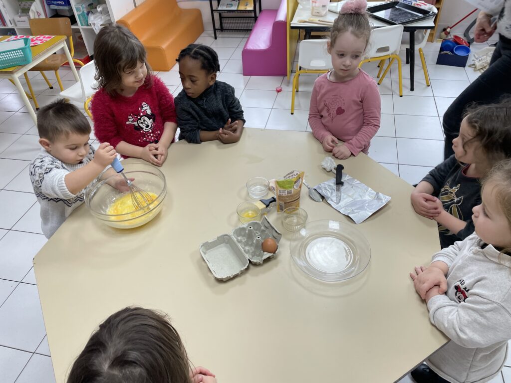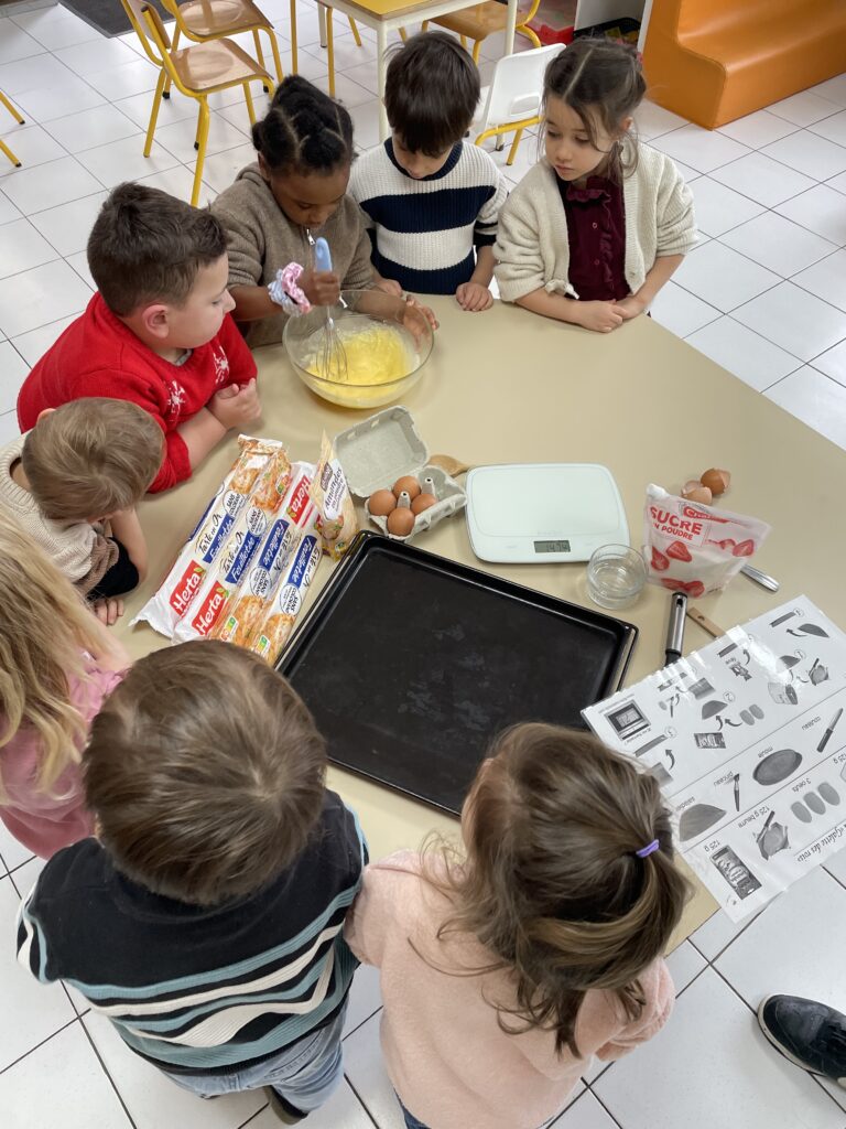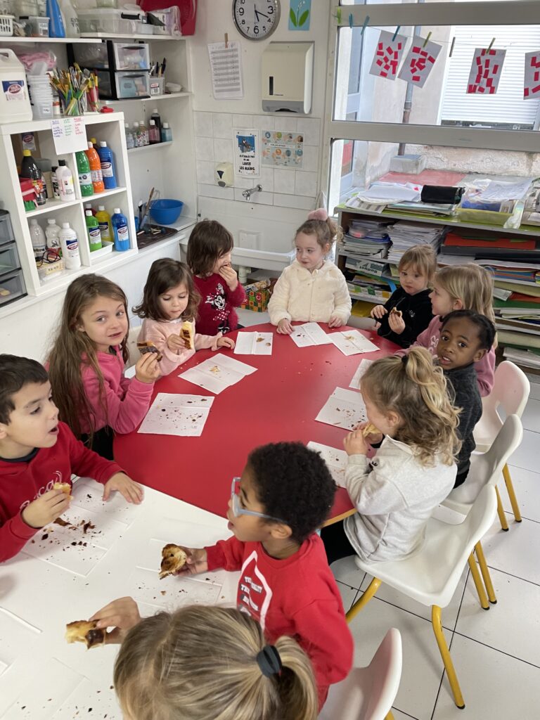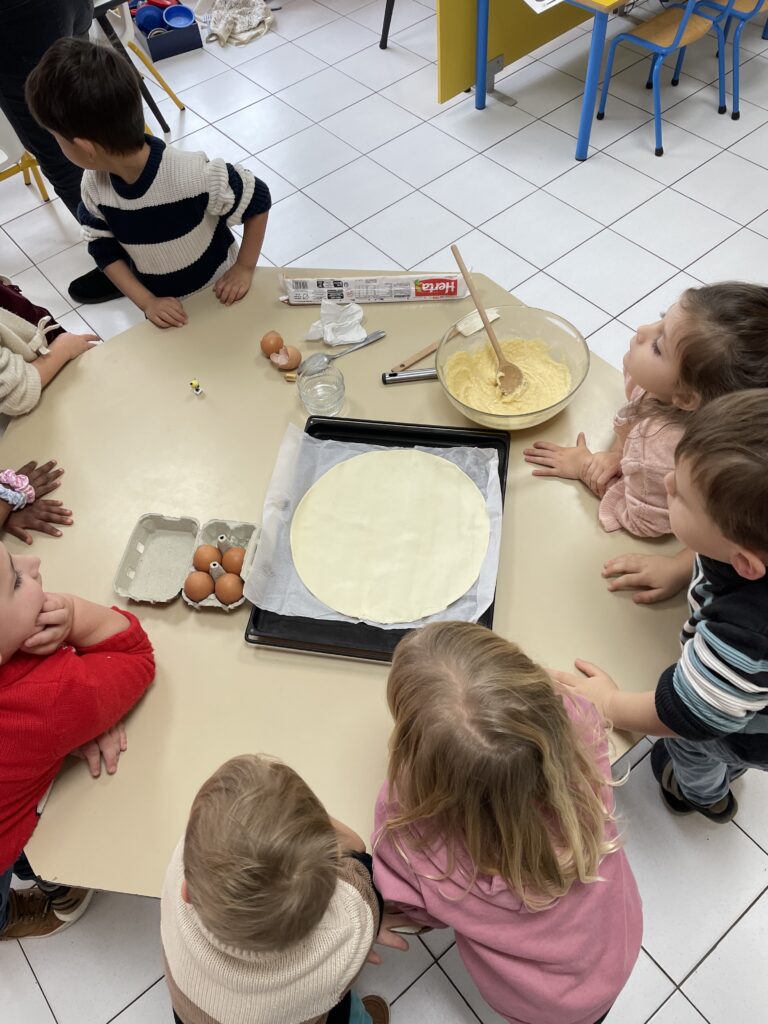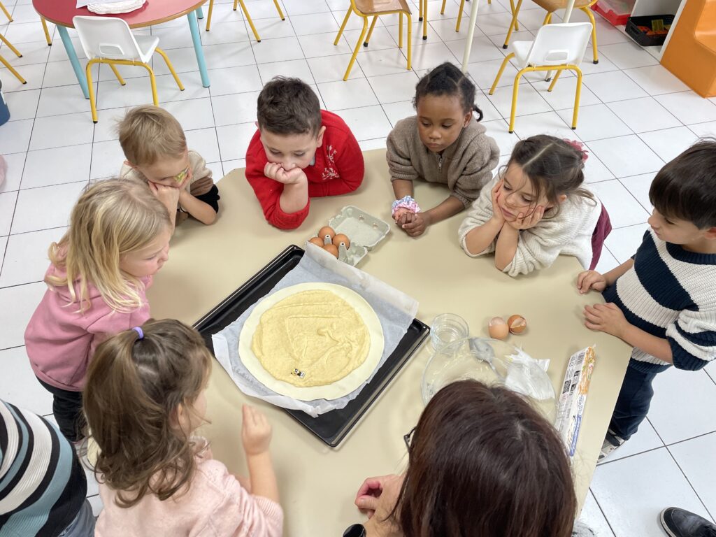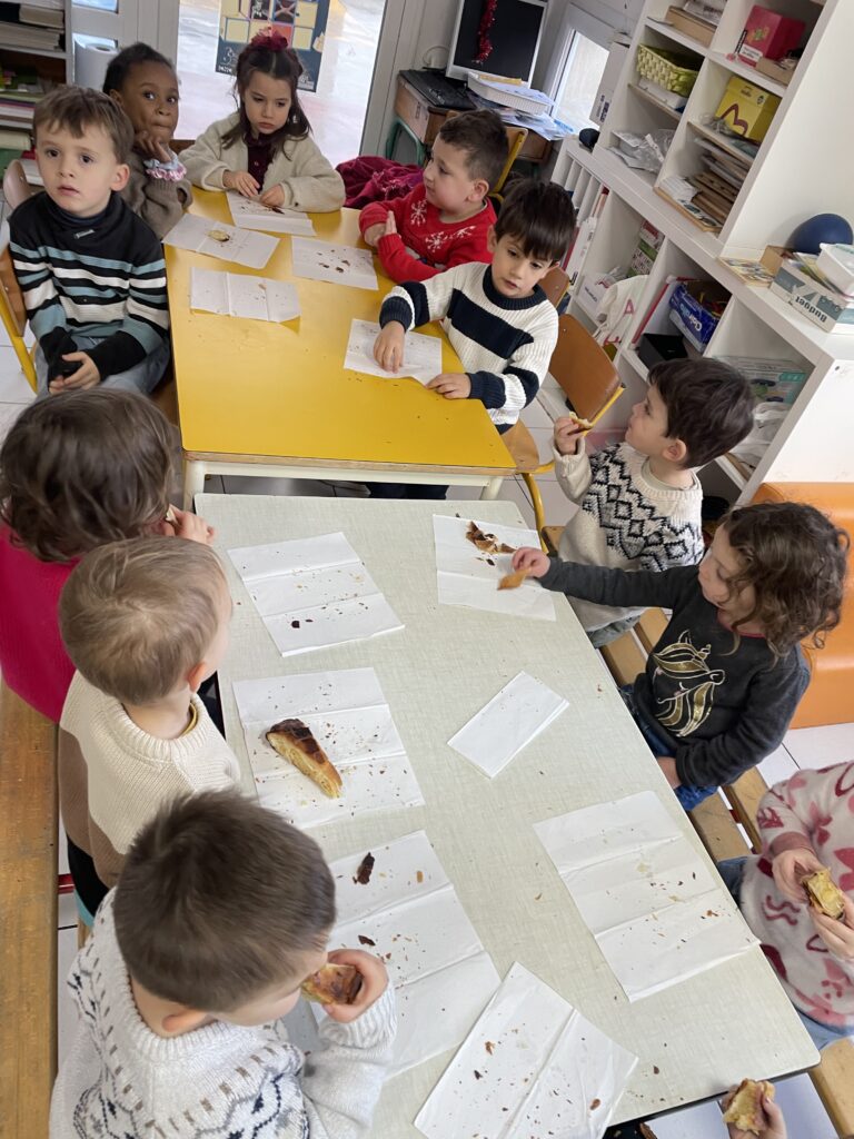 Tout est prétexte à cuisiner en classe de maternelle. L’Epiphanie est donc un incontournable avec la préparation de galettes et couronnes. Les élèves de la Petite et Moyenne section de maternelle ont ainsi réalisé deux belles galettes qu’ils ont partagées avec leurs copains de la Grande section.